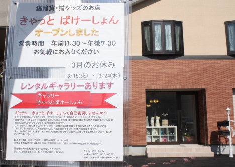 2011年2月に猫の雑貨店‘きゃっと ばけーしょん’をopenしました。