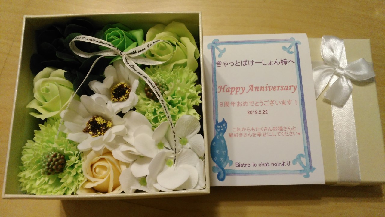 8周年のお祝いに素敵なお花をいただきました