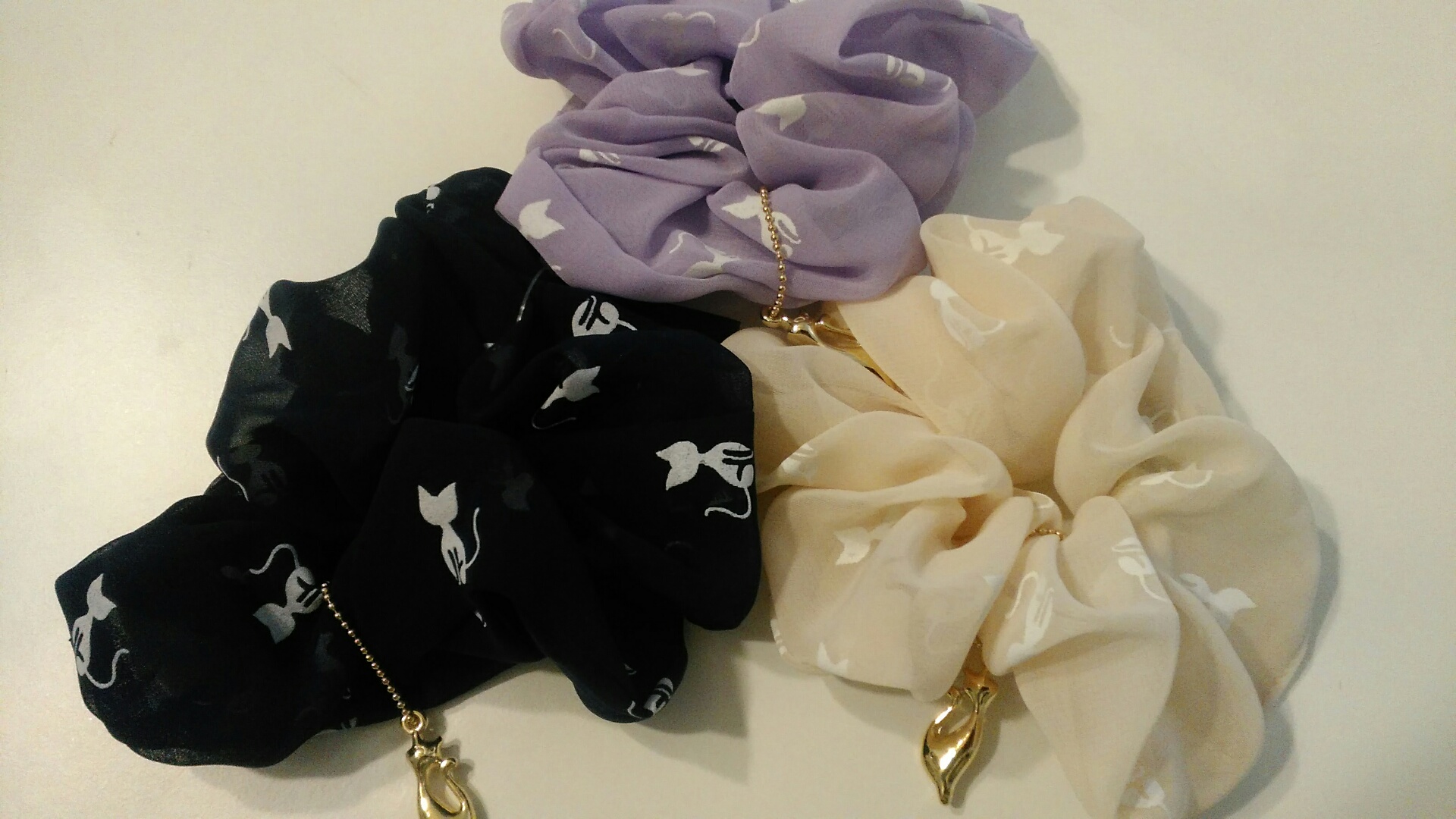 雰囲気ががらりと変わって形は猫だけど色味はシンプルなヘアゴム