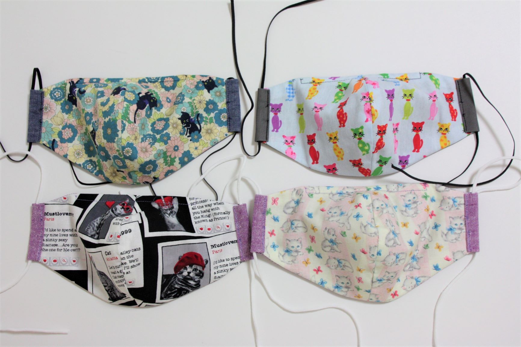 お仕事や学校でも使えるように表は無地のマスク作りました。