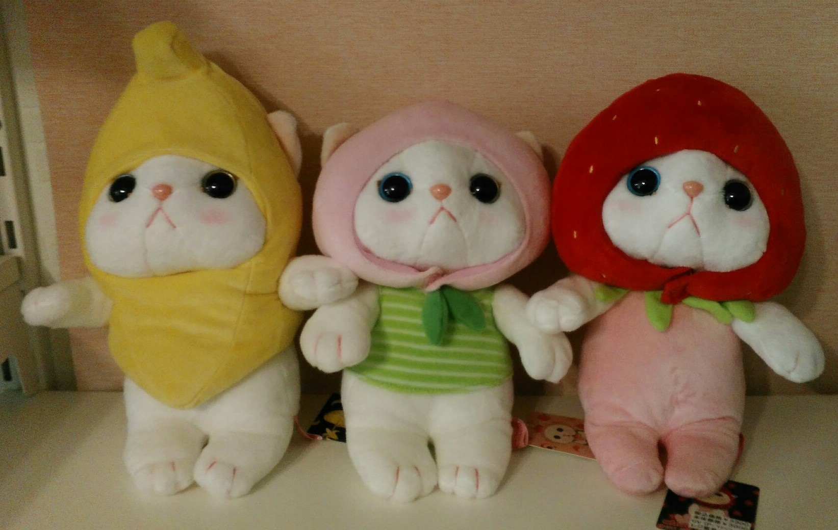 向かって左からバナナちゃん、桃ちゃん、いちごちゃんですemoji