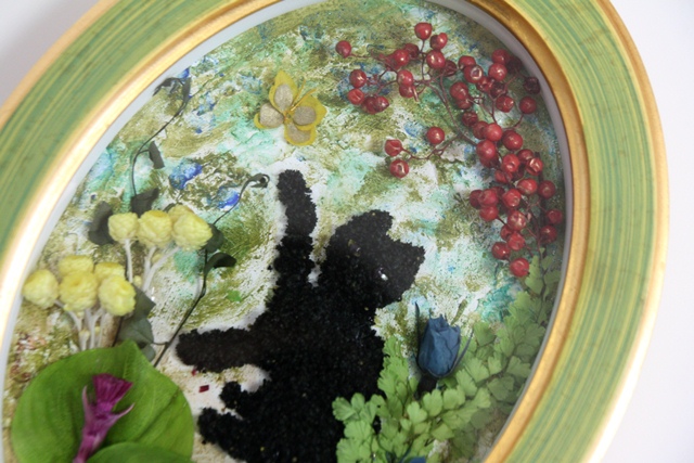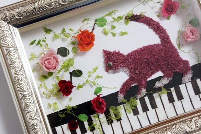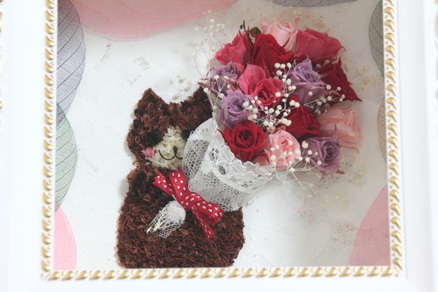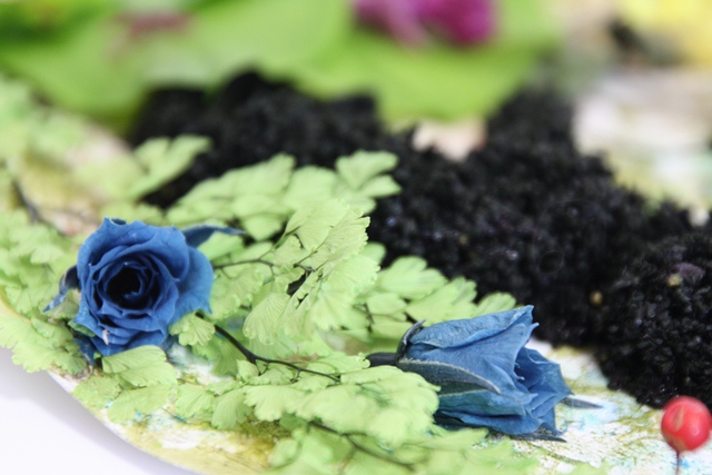 簡単に言うとプリザーブドフラワーを使って作る3D作品のこと。