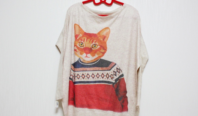 セーターを着た猫ちゃん柄。