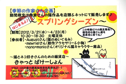 香川県高松市にある猫雑貨・猫用グッズのお店‘きゃっと ばけーしょん’についてのあれやこれやを記します。