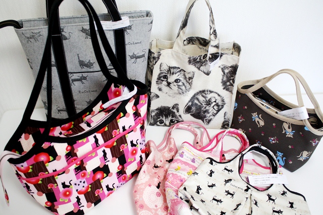 色とりどりのブックカバーやポーチ、写真にはないですが今回は大きなクッションもあったりします