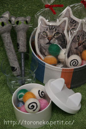 こちら手前が猫ちゃんのおもちゃ用のフェルトボール。