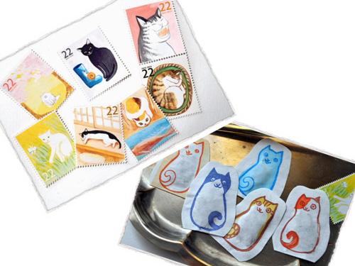 手ぬぐい(↓の左)、切手型シール(↓の右上)、文香(↓の右下)等も作られています。