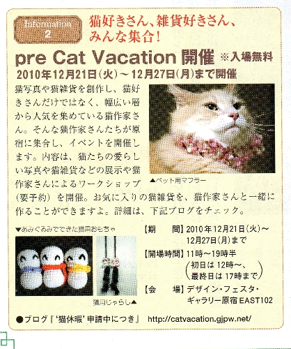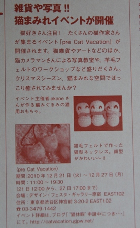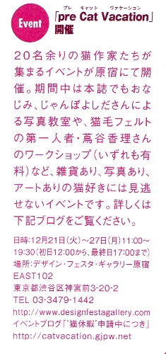 今月12月11日に発売の号で猫びよりさんとくらしの百科さんの冊子にイベントの告知を載せていただくことができました