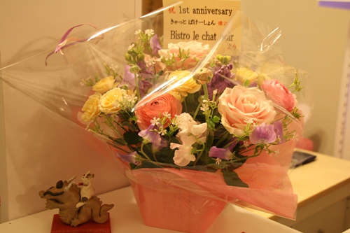 東京のビストロ シャノワールさんからお祝いのお花をいただいちゃいました