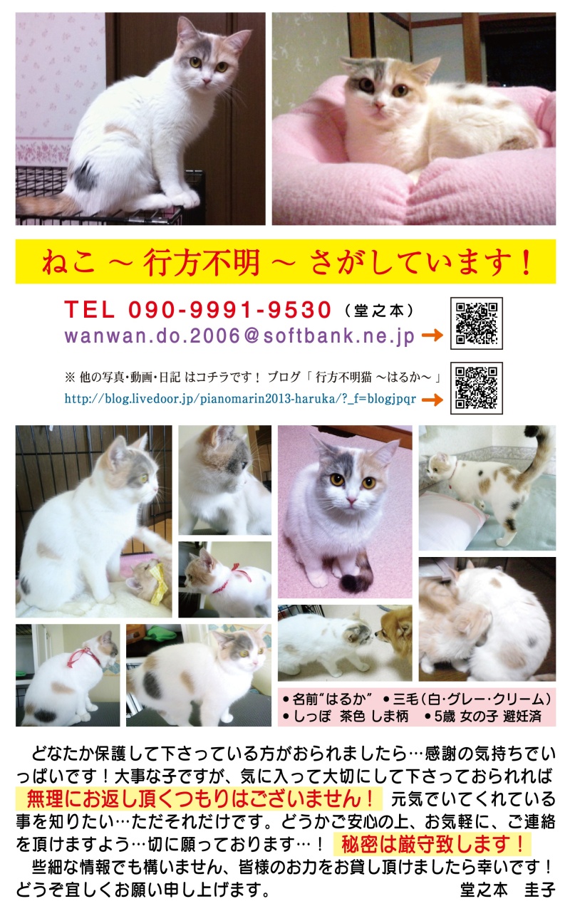 何か情報がありましたら下記のリンク先の飼い主様のブログの方にお知らせをお願いします。