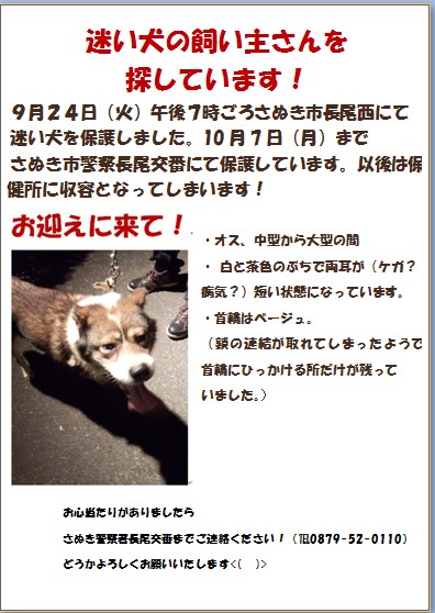 連絡先は さぬき警察署 087-894-0110(10月7日まで)