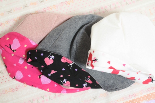 こんな風に無地の帽子の縁からネコとハートがのぞいてたらキュートかなと
