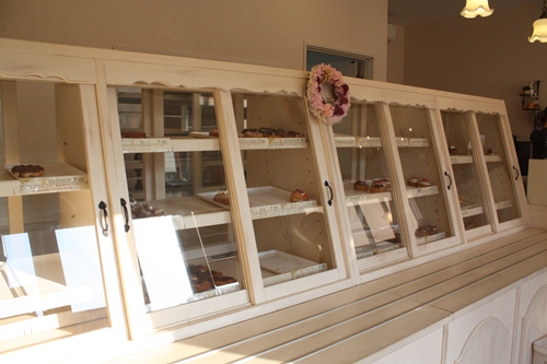 」のものばかり。店内はこんなおしゃれなドーナツ棚があって
