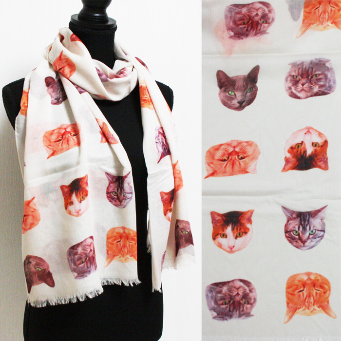 さて今日は猫さんのお顔がいっぱいのストールのご紹介です