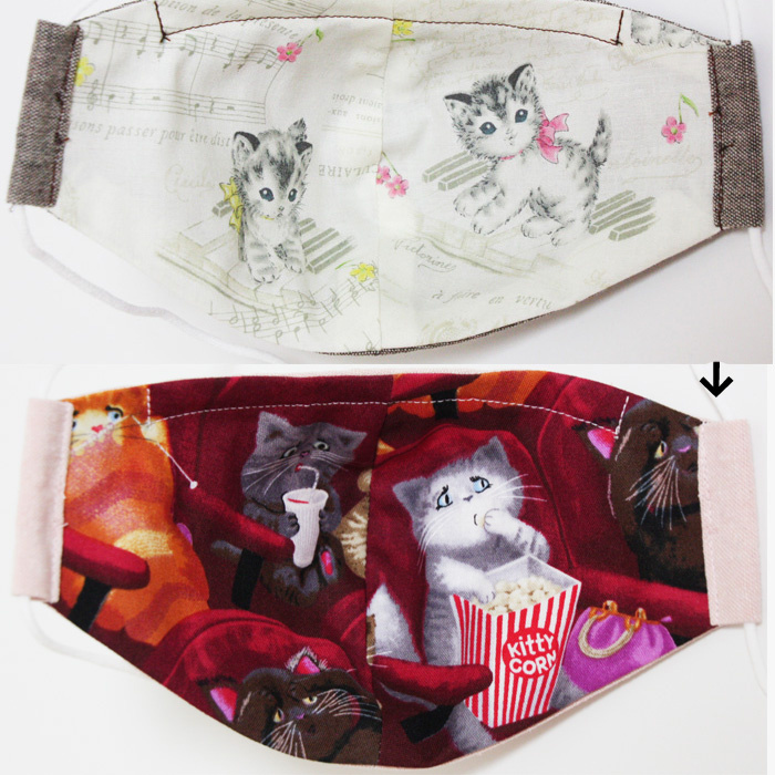 裏が猫柄の立体布マスクを頑張って追加製作しましたっ