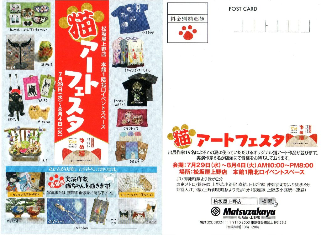 7月29日から松坂屋上野店さんで行われる「猫アートフェスタ」のDMがやってきました