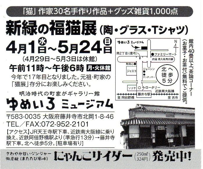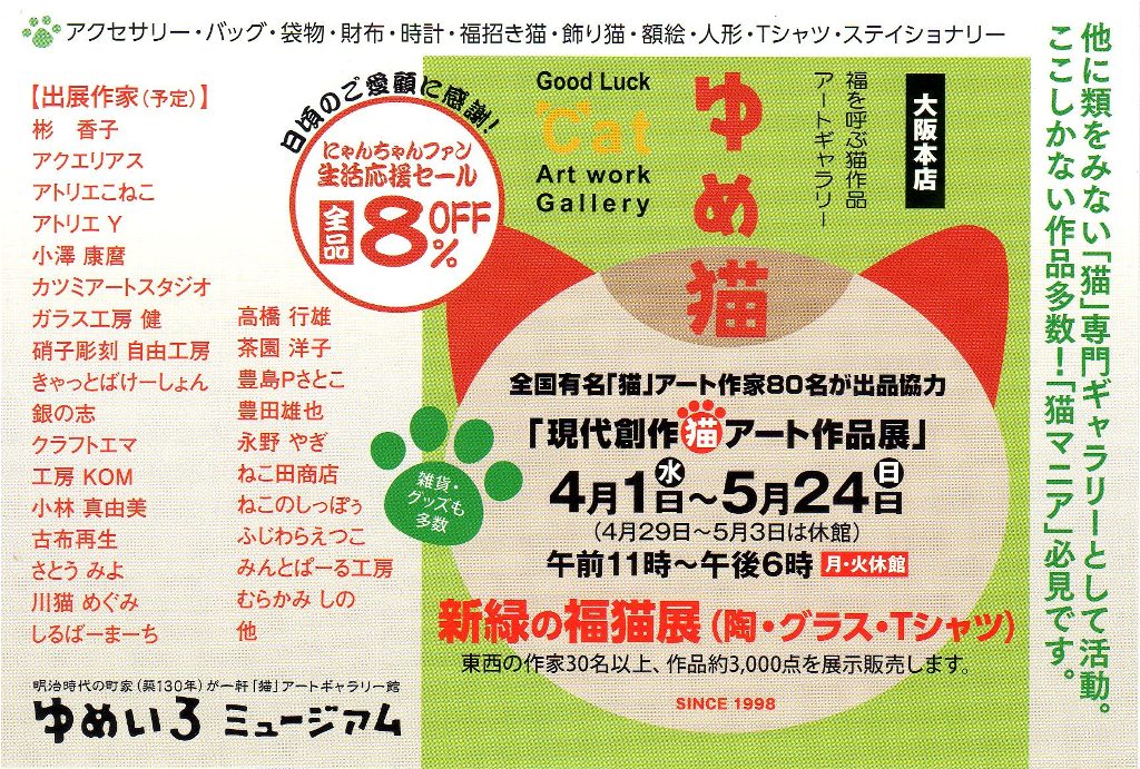 そうこうしている内に4月1日からゆめいろミュージアムさんの「新緑の福猫展」がはじまりましたよ