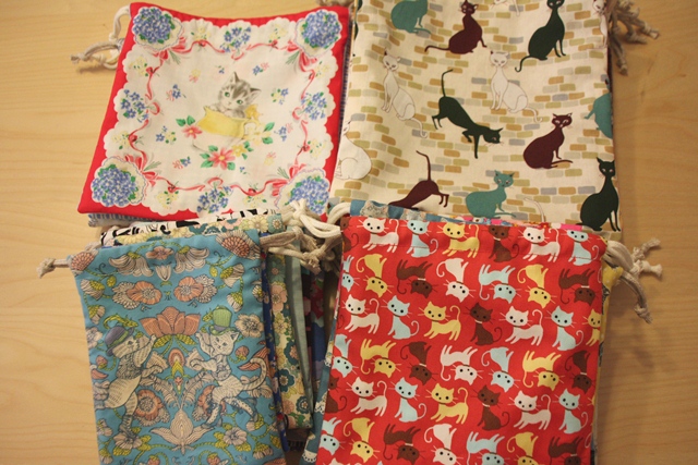 作りたてほやほやの巾着やポケットティッシュケースなどもドサッと納品させていただいているので