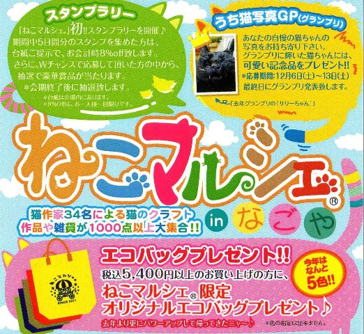 いよいよ12月6日(土)から名古屋にて猫催事‘ねこマルシェ’がはじまりますよ