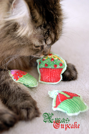 猫ちゃんのおもちゃのXmas Capcake(画像左)とSilly Mouse(画像右)を出してくださるとのこと。
